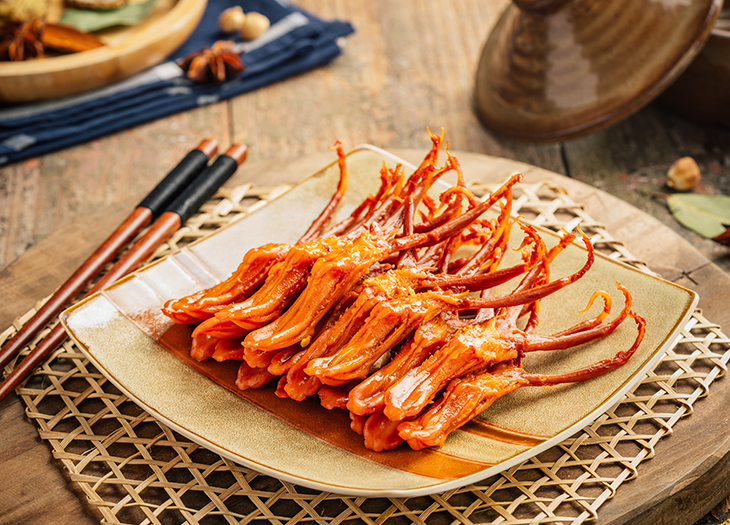 獨特工藝,蒸汽鹵制,醬鹵收汁,鎖住營養(yǎng)。28種植物香辛料,醬香鮮辣,締造全國特色風味醬鴨。